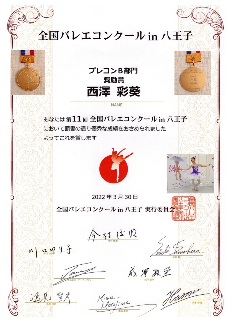 2022第11回全国バレエコンクールin八王子にふじみ野スタジオから西澤彩葵と森めぶきの2名が出場しプレコンB部門に出場し初めてのコンクールリハーサル参加でしたが奨励賞を頂きました。㊗おめでとうございます!