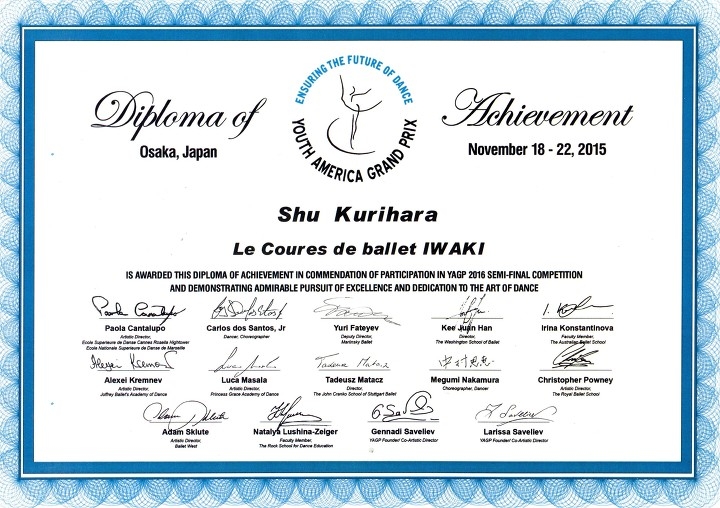 ユースアメリカグランプリ(YAGP)2016日本予選参加