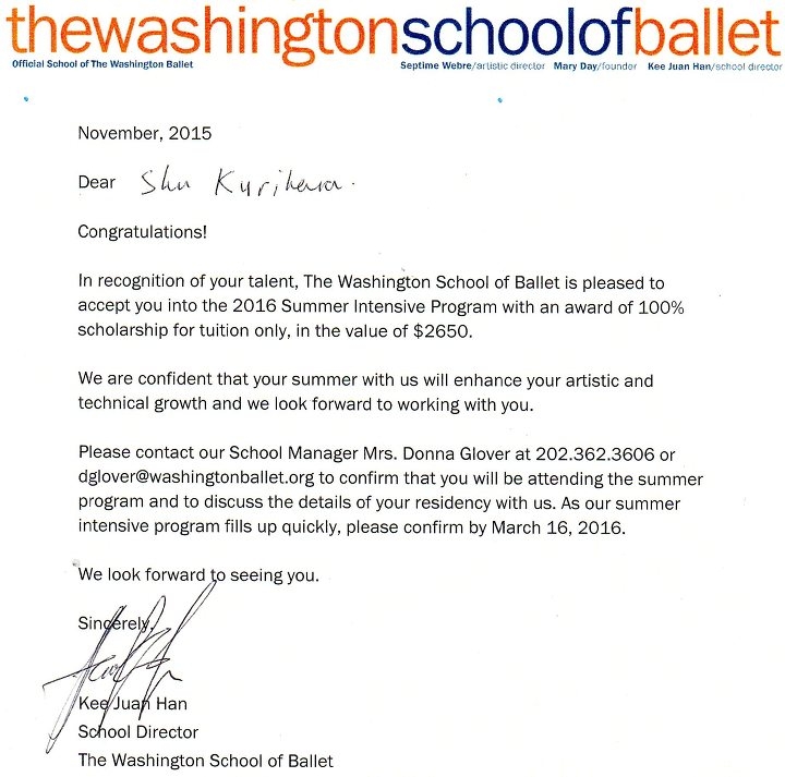 ワシントンバレエスクール スカラーシップ賞