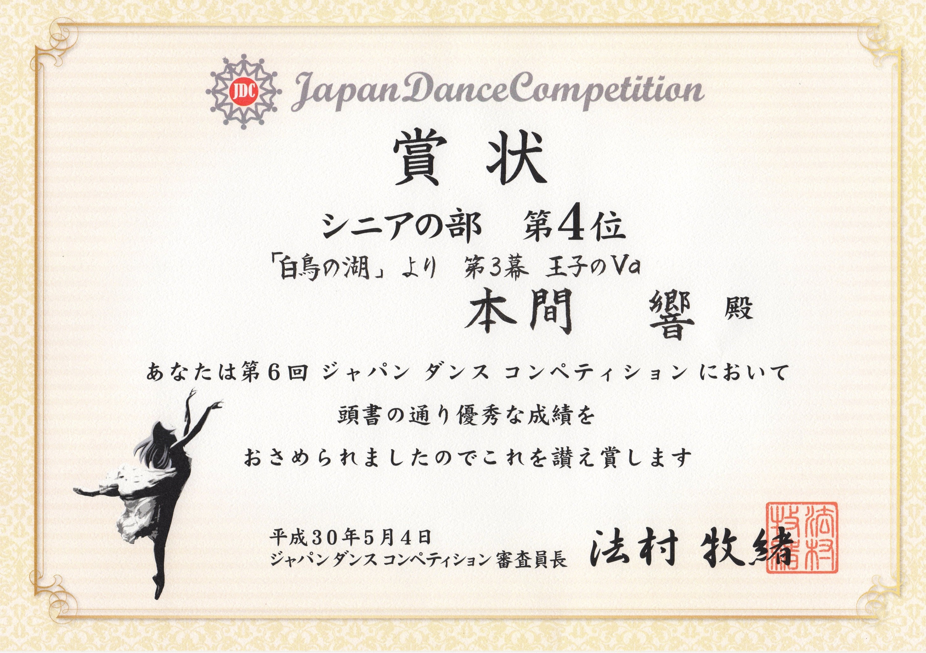 ㊗シニアの部 第4位受賞・奨励賞受賞・国内外スカラーシップ賞受賞