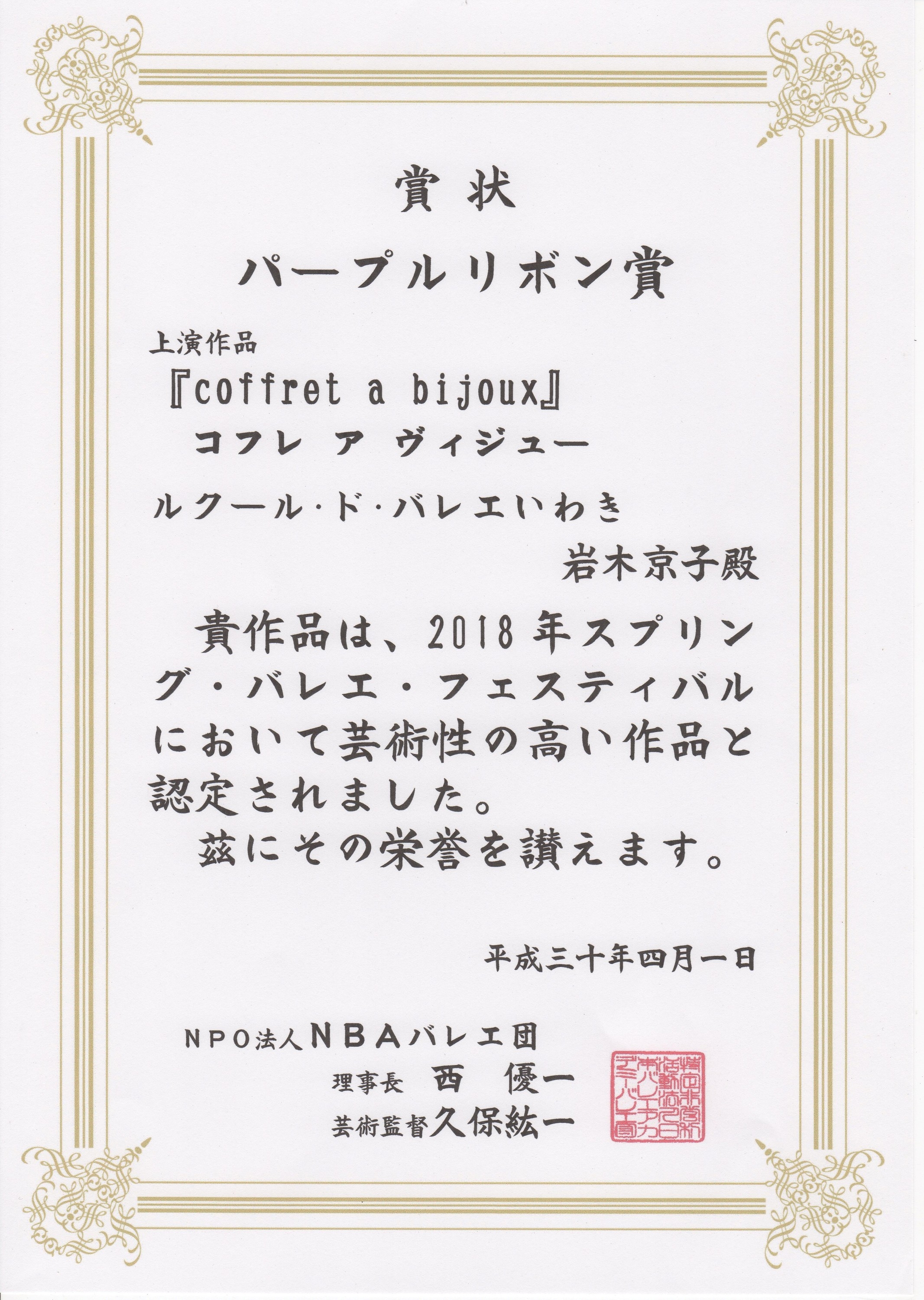 ㊗パープルリボン賞受賞(芸術性の高い作品と認定されました)