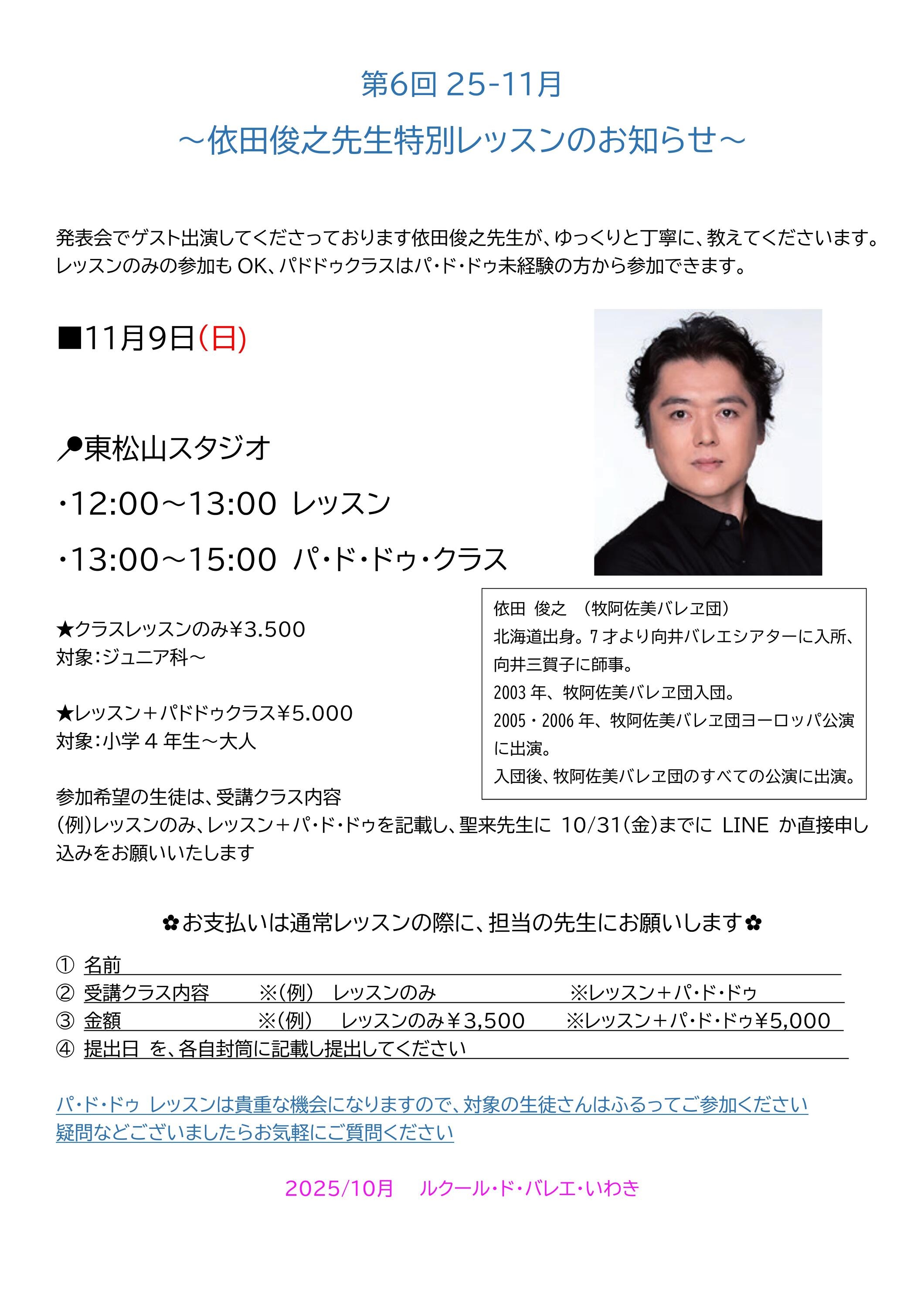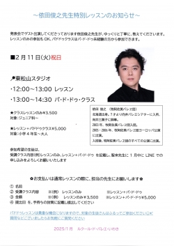 日時:2025/4/29(火) 12:00 フルレッスンクラス 13:00~パ・ド・ドゥ・クラス