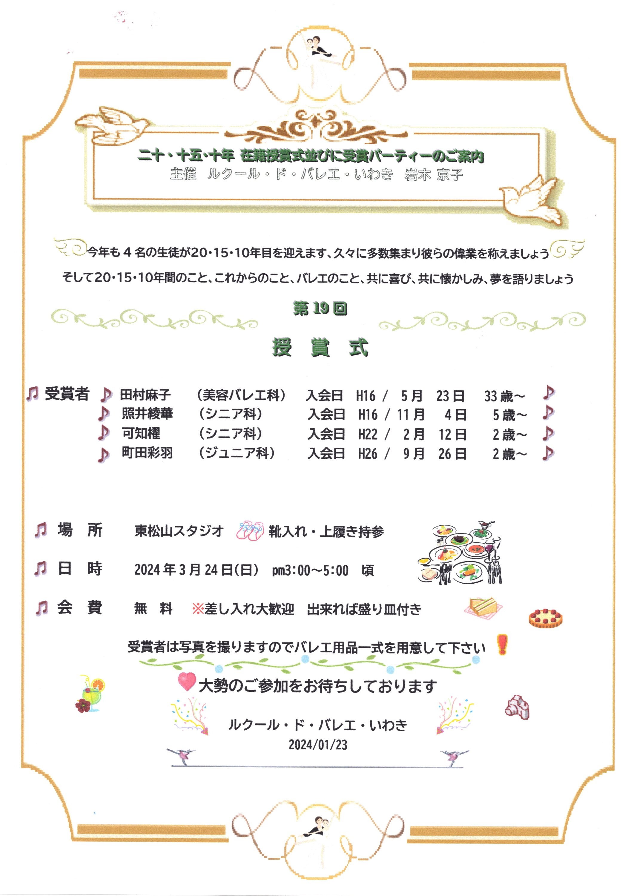 ルクール・ド・バレエ・いわき会員在籍10ヶ年授賞式
