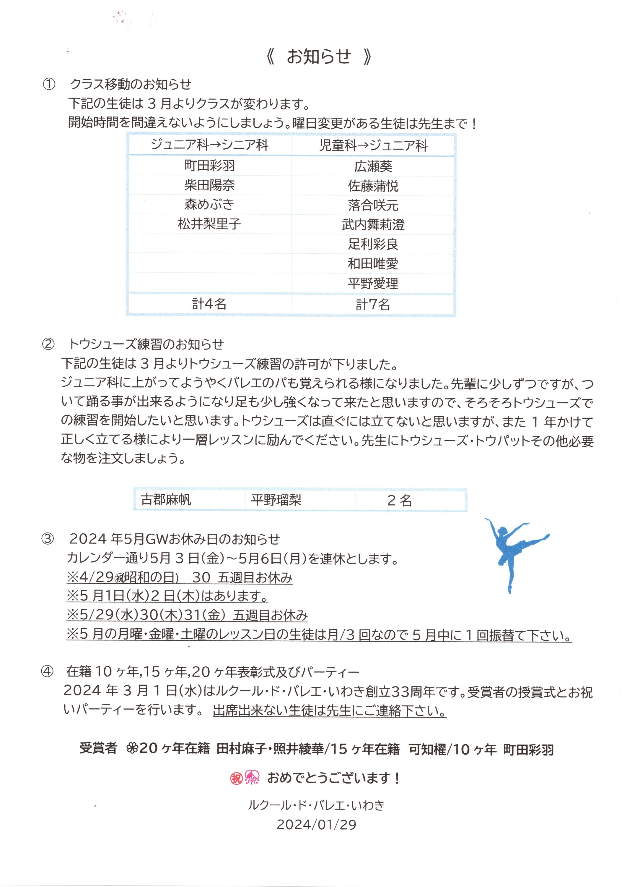 2024年3月3日でルクール・ド・バレエ・いわき設立33周年を迎えます!