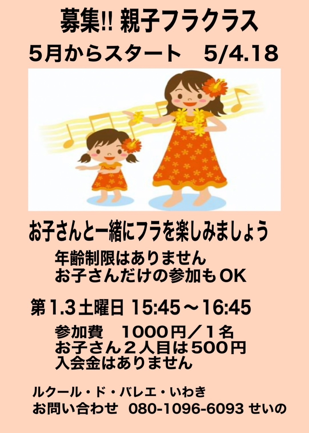 お知らせ/ふじみ野スタジオ 清野明子先生の親子フラレッスン開始