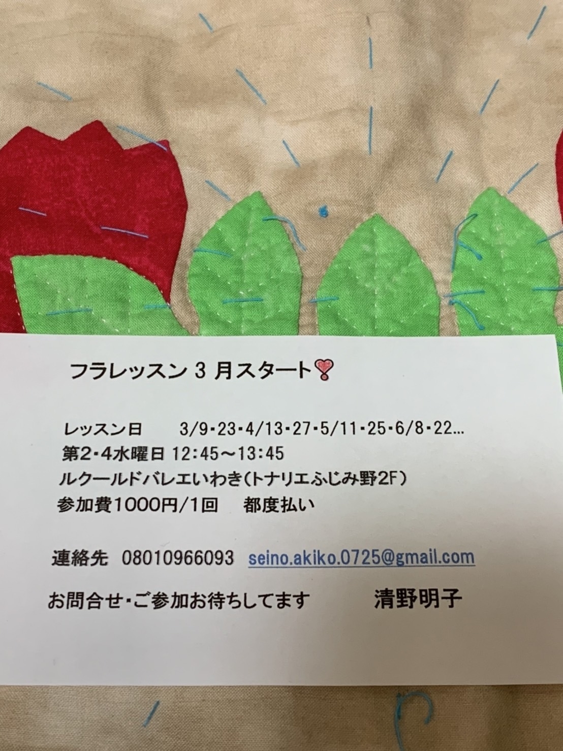 連絡先:080-1096-6093 (清野 明子/せいの あきこ)
