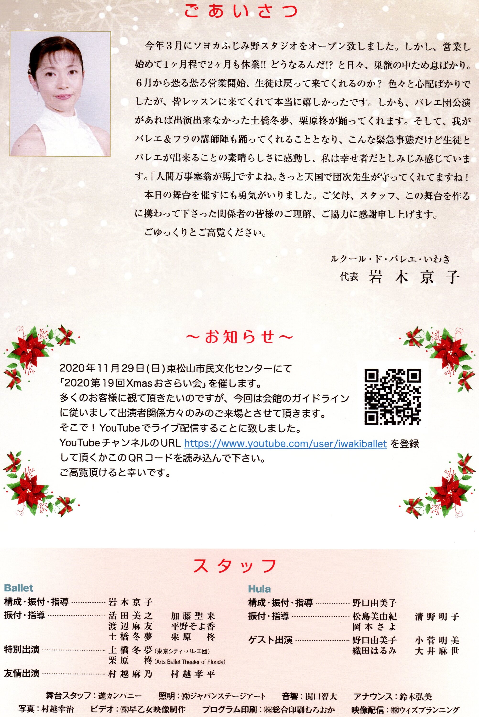 そこで!YouTubeでライブ配信することに致しました。YouTubeチャンネルのURL https://www.youtube.com/user/iwakiballetを登録して頂くかこのQRコードを読み込んで下さい。