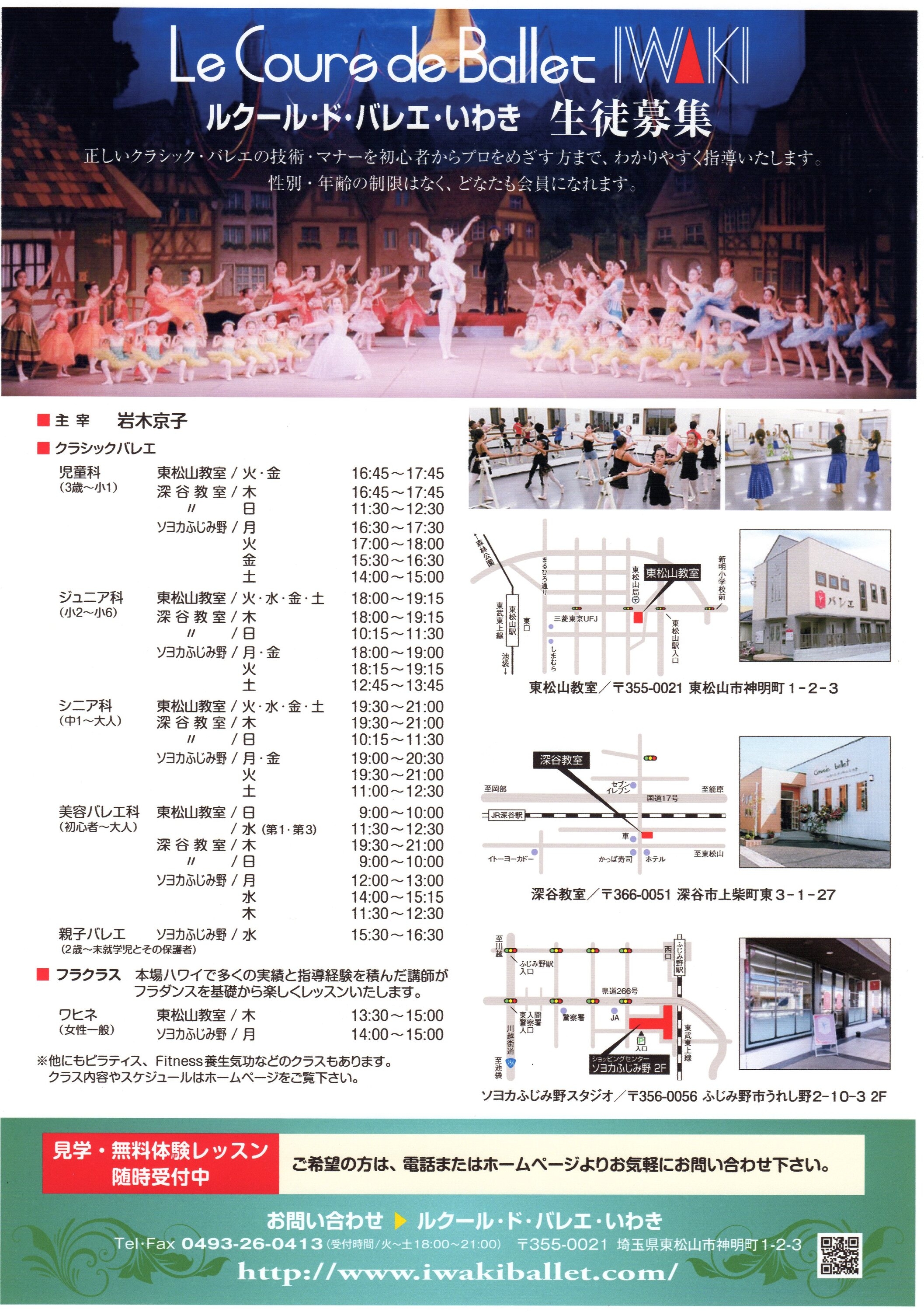 日頃より東松山教室・深谷教室・ソヨカふじみ野スタジオにお越しいただき誠にありがとうございます。