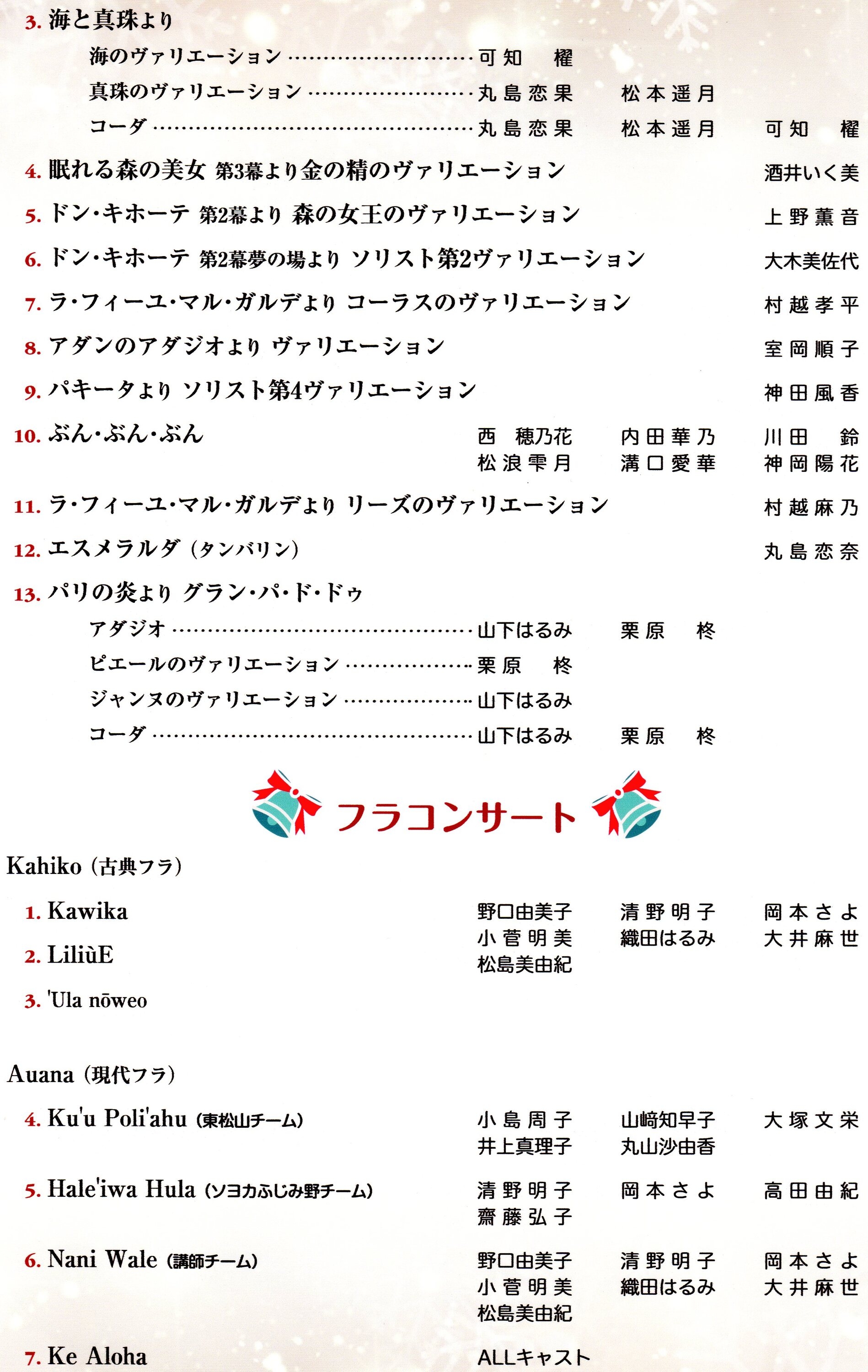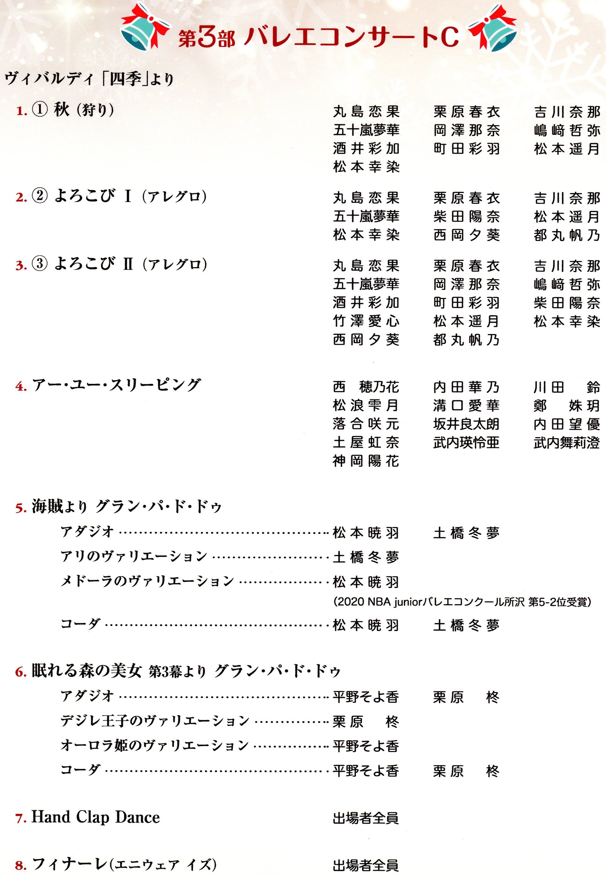 2020年11月29日(日)第19回Xmasおさらい会プログラム