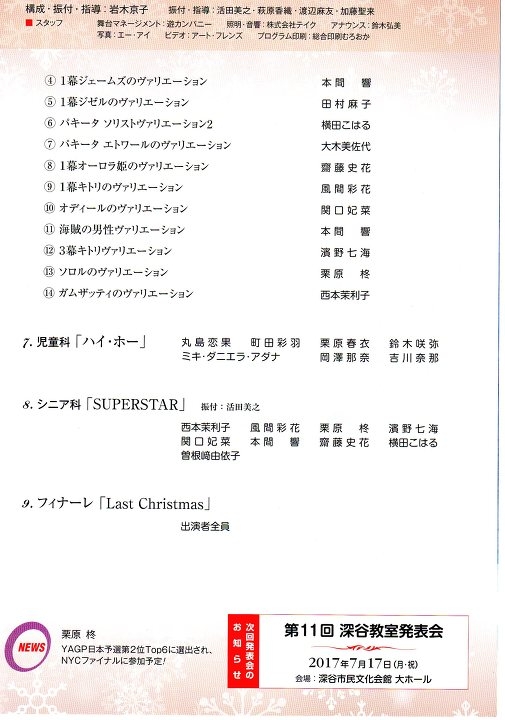 YAGP第2位の栗原柊も出演致します!フラクラスや楽しい作品をみんなで猛練習中ですので、大勢の方のご来場お待ちしております。